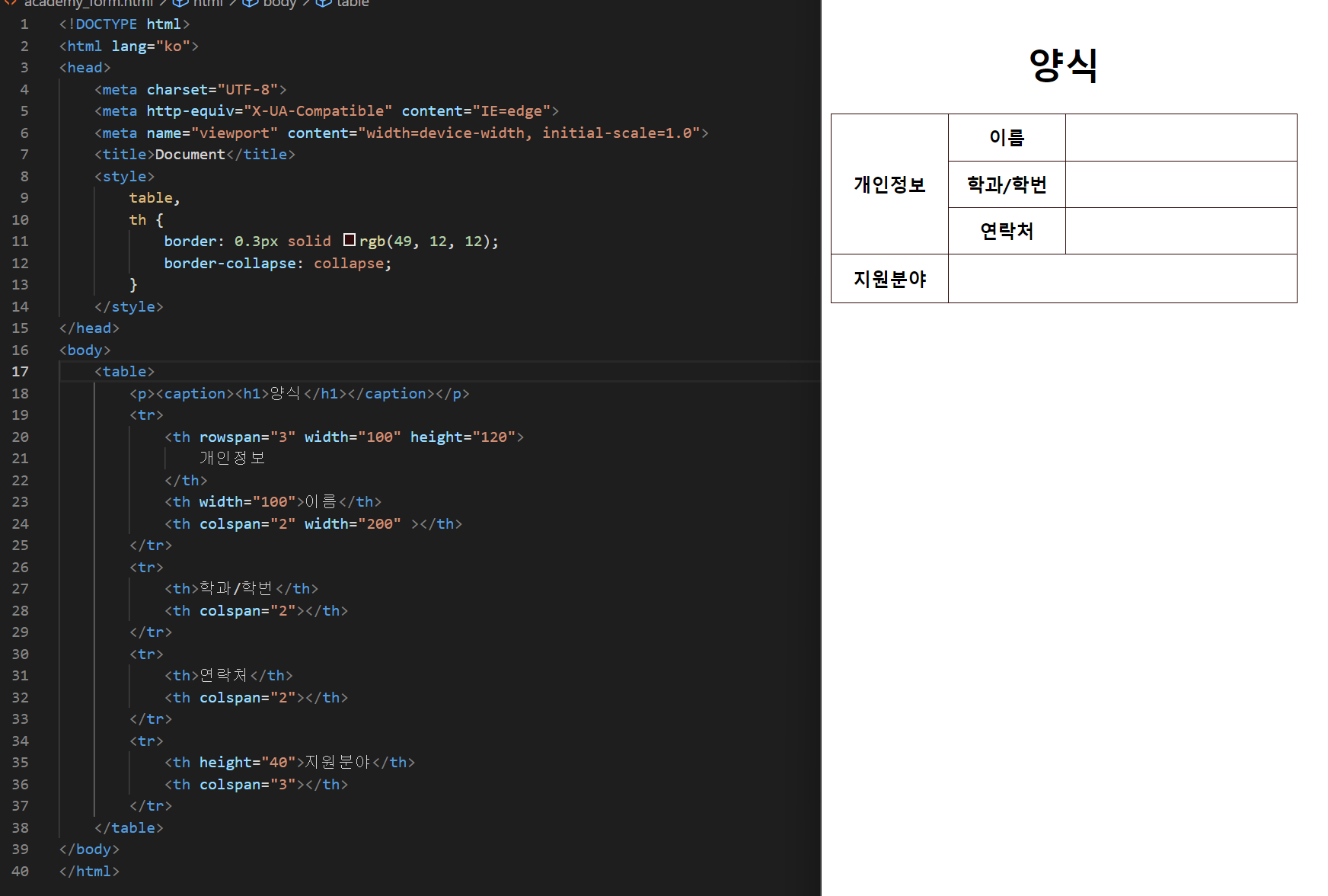 caption태그 : 표제목 위쪽 중앙에 표시된다 -> 표의 제목을 표시