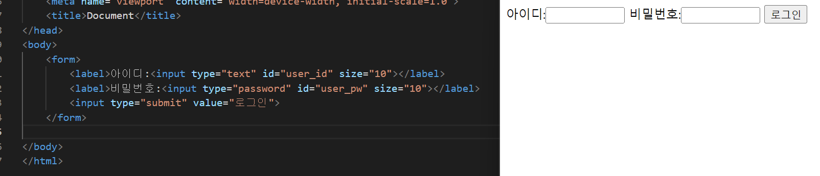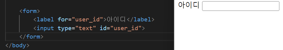 레이블 : 입력란 가까이에 아이디나 비밀번호처럼 붙여놓은 텍스트